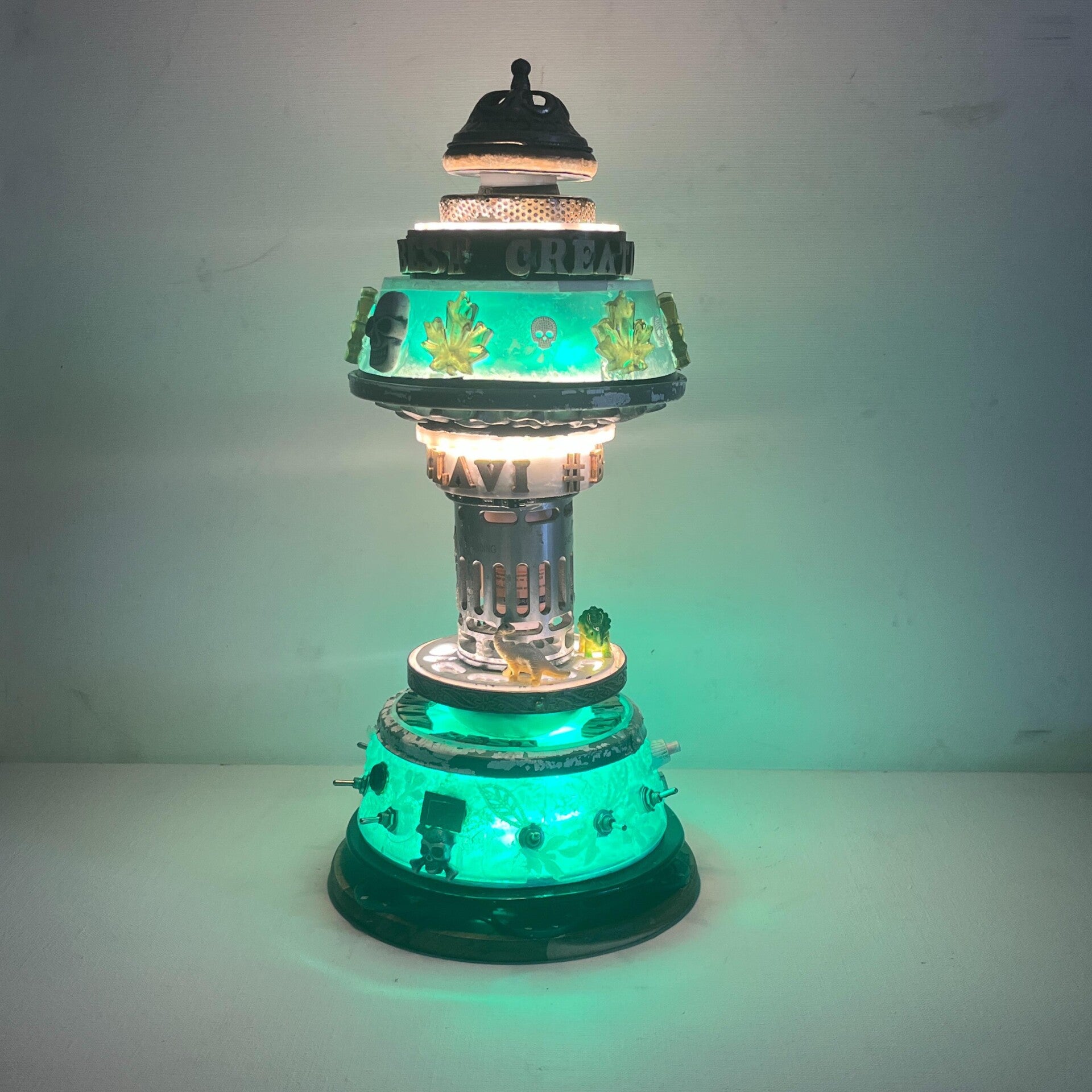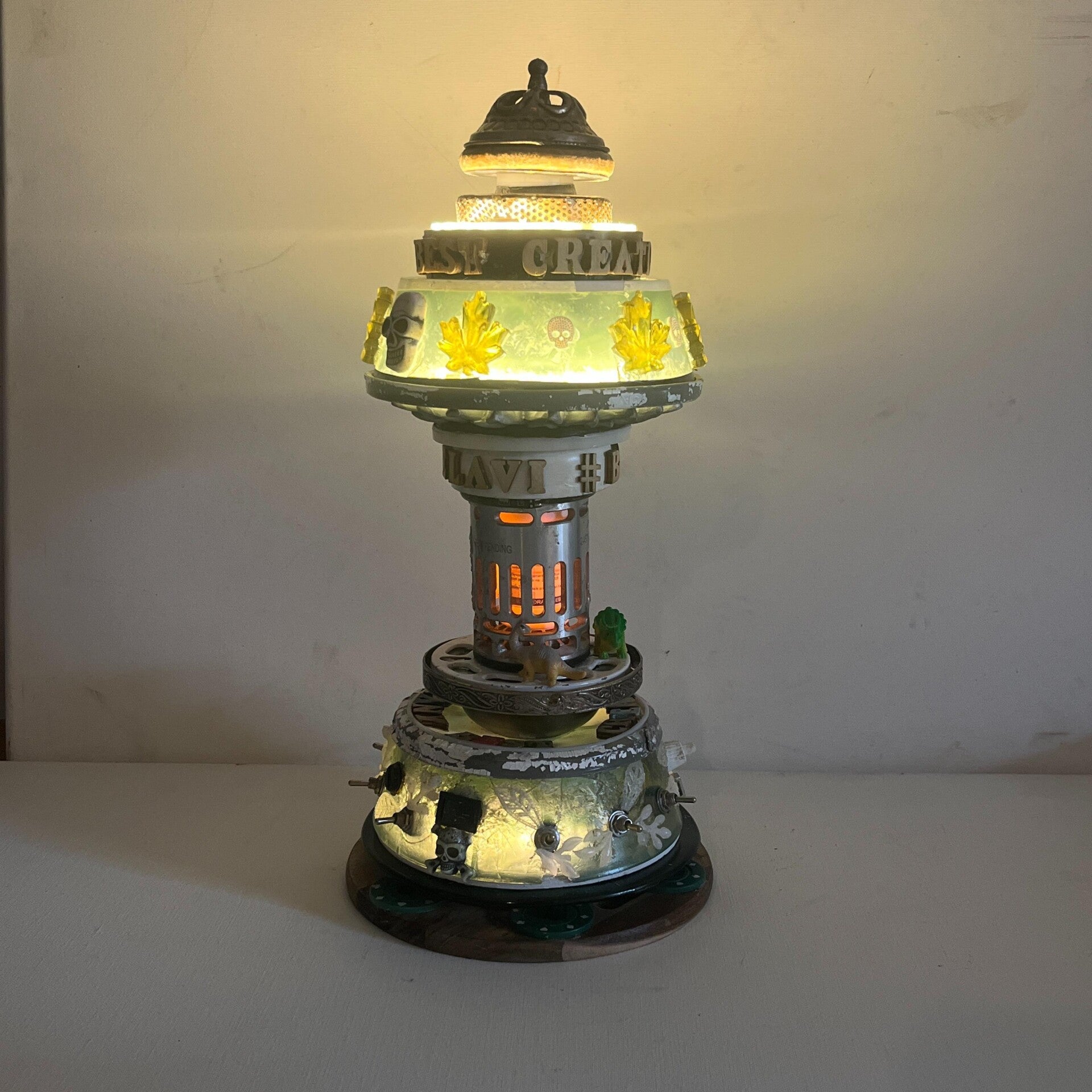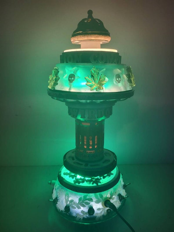 divers lampje met 9 knoppen licht, een on/off switch en een knop voor de speaker. bluetooth en oplaadbaar via de usbc poort